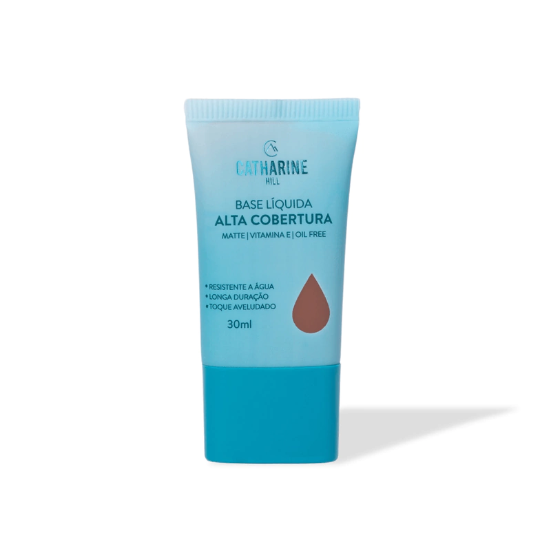 Em nova embalagem, a Base de Alta Cobertura da Catharine Hill continua entregando tudo que uma base de alta performance precisa. Ela tem acabamento matte com toque suave e aveludado, alta duração, é resistente à água, além de ser oil free e HD e conter em sua composição vitamina E.