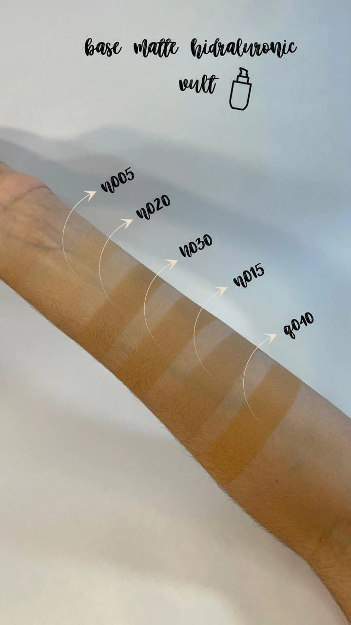 A Base Líquida Vult Hidraluronic Matte tem em sua fórmula Ácido Hialurônico, responsável por reter a umidade, hidratando e mantendo a pele firme. Seu acabamento matte deixa a pele sequinha, com brilho e oleosidade controlados por todo o dia. De cobertura média, tem duração de até 8h. Sua textura leve permite a construção de camadas, deixando sempre um acabamento natural e uniforme e sem marcar as linhas de expressão. Disponível em 12 cores, atende a variados tons de pele.