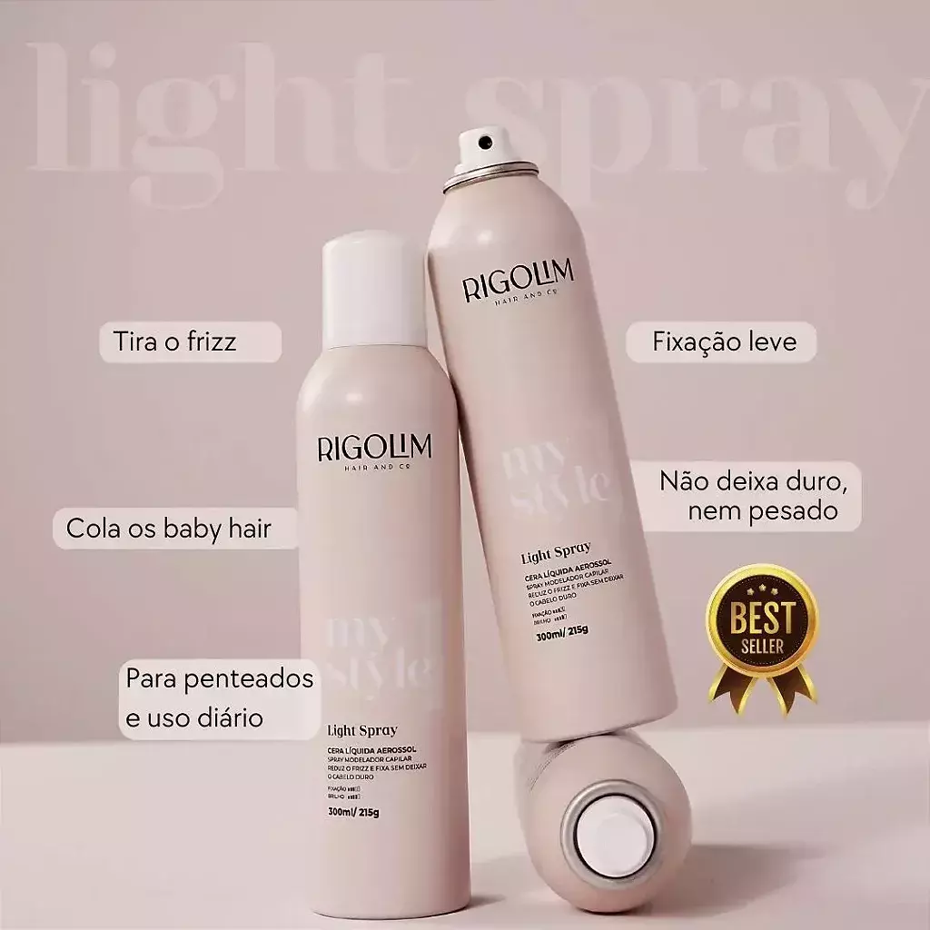 O Light Spray é um spray antifrizz com leve fixação, ideal para modelar e finalizar penteados. Após a aplicação, é possível modelar o cabelo com tranquilidade. Não deixa o cabelo pesado e nem resseca os fios.