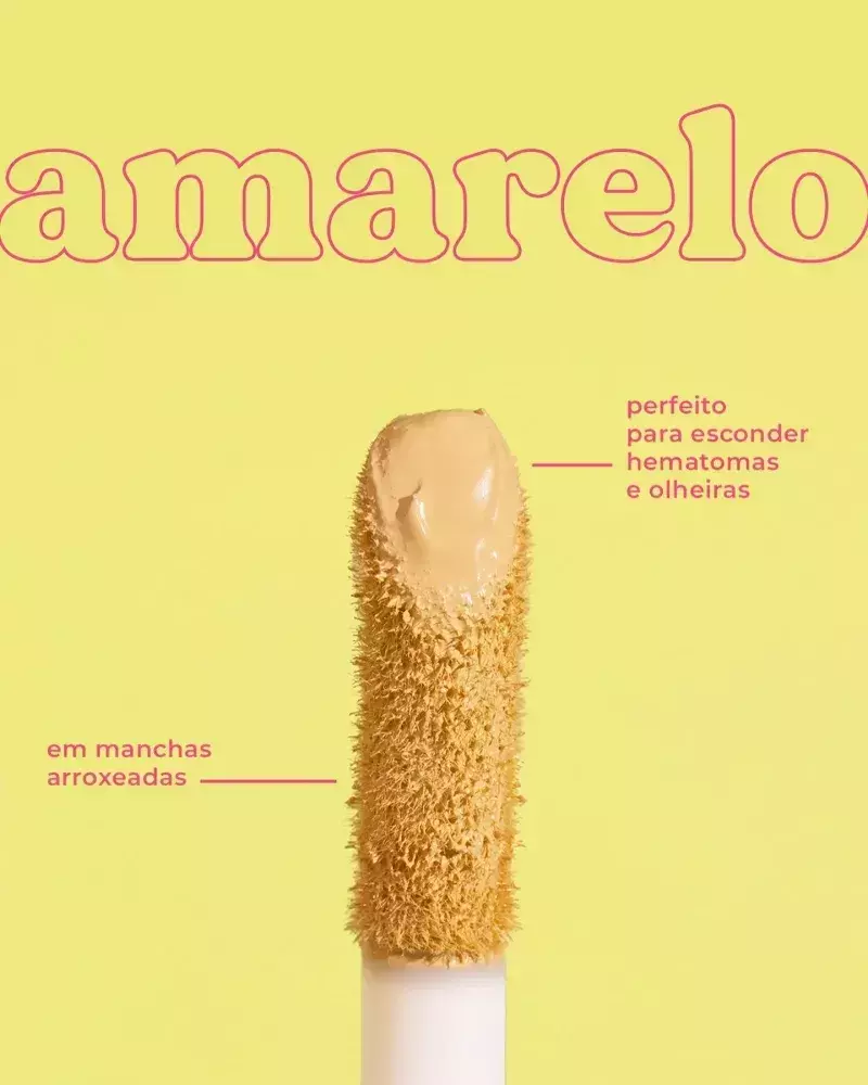 Amarelo: Neutraliza manchas arroxeadas, como hematomas e olheiras nesse tom.