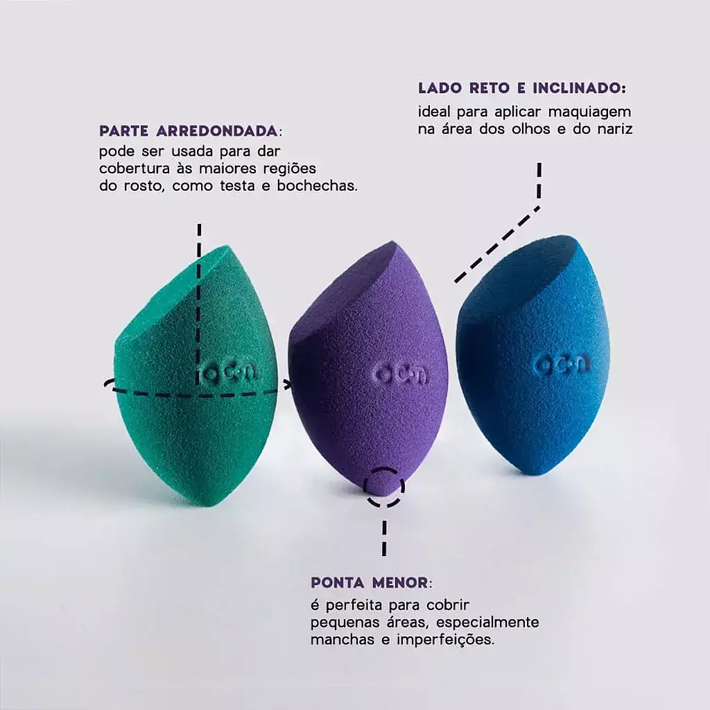 O produto tem um design anatômico em forma de gota com 3 superfícies diferentes: uma angulada, outra curva, além de uma ponta fina. Essa variedade faz deste item a escolha perfeita para aplicar maquiagem líquida, cremosa ou em pó em todo o rosto com o mesmo produto. Maravilhoso, né?