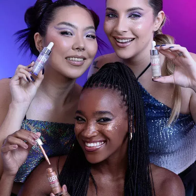 Com micropartículas de brilho que garantem glow intenso e instantâneo