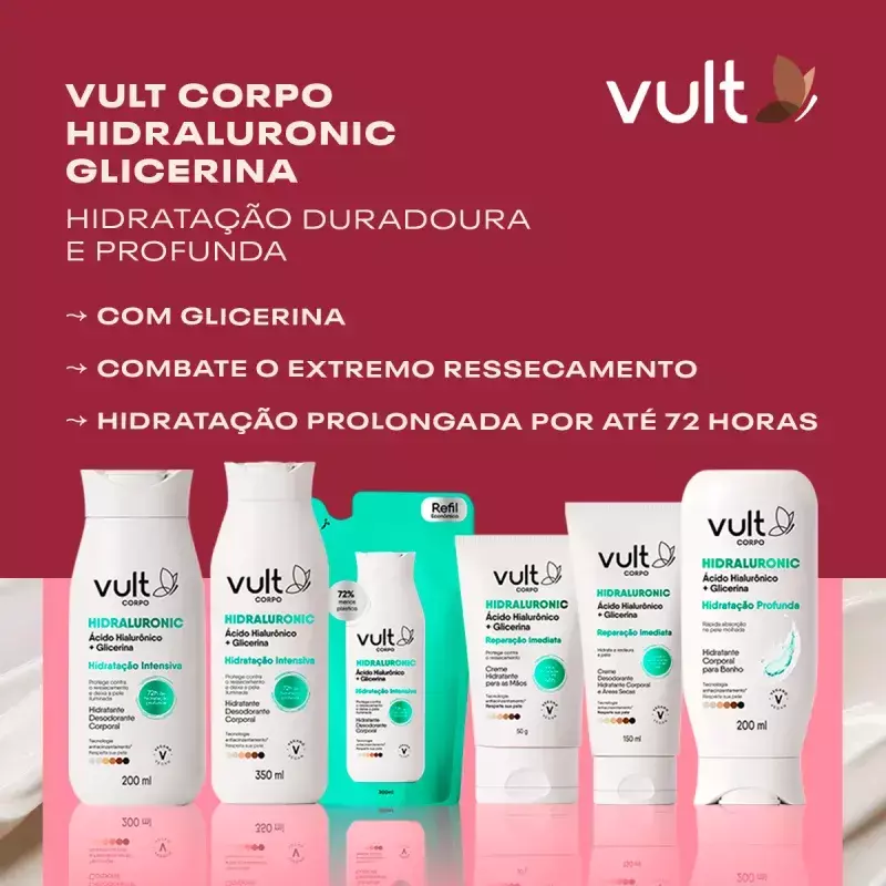 O Refil Hidratante Desodorante Corporal Vult Corpo Hidraluronic Hidratação Imediata chegou para trazer mais hidratação intensiva para os seus momentos de autocuidado.