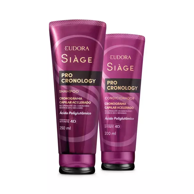 O Combo Siàge Pro Cronology: Shampoo 250ml + Condicionador 200ml + Máscara de Hidratação 250g é ideal para pausar a degradação e o desgaste dos seus fios e recuperar até os danos mais severos em até 2 semanas: