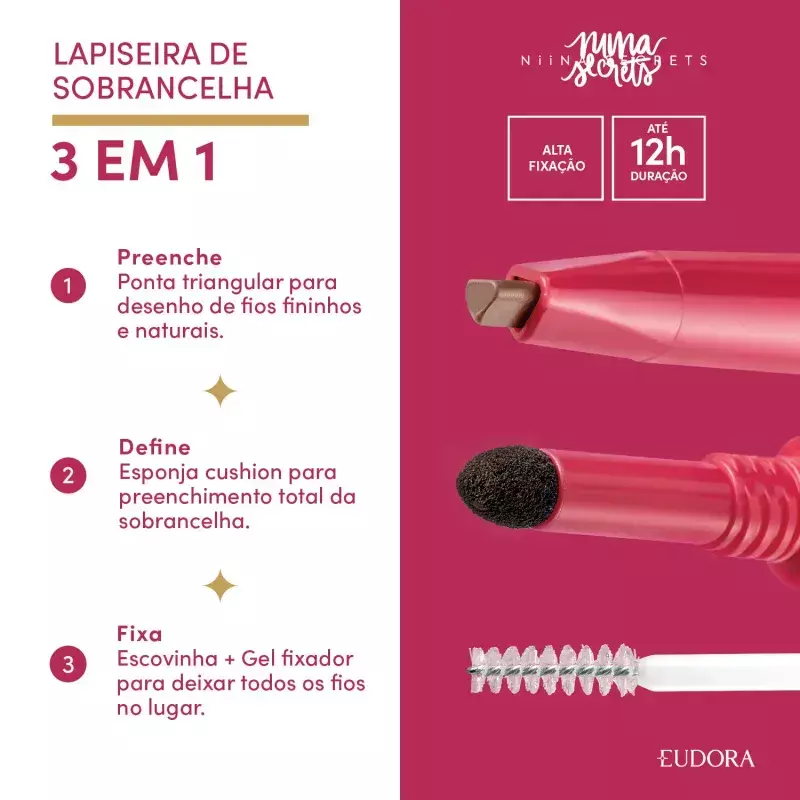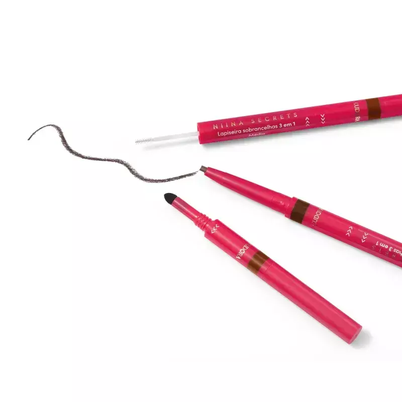 Idealizada para quem ama praticidade sem abrir mão de beleza e sofisticação, a Lapiseira de Sobrancelha 3 em 1 Niina Secrets preenche, define e fixa a sobrancelha. De fácil aplicação com acabamento natural , essa lapiseira de sobrancelha dispõe de: