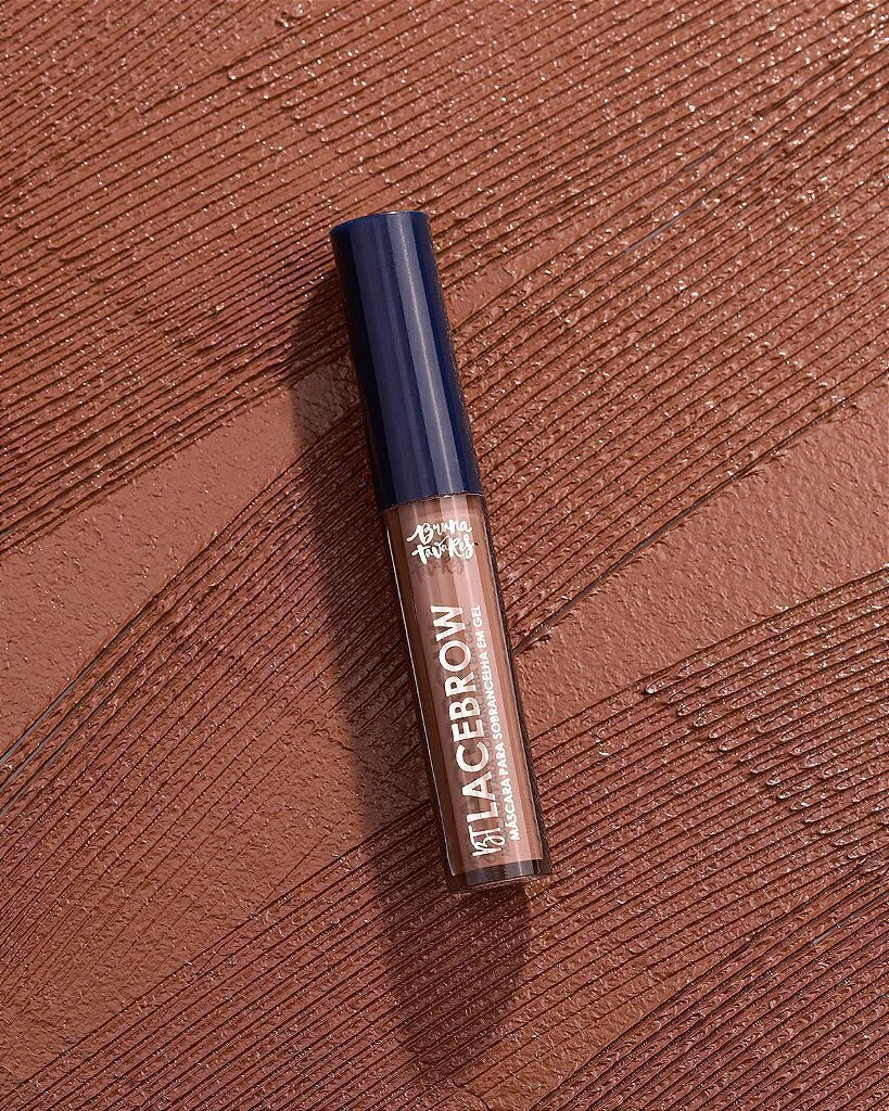 Uma máscara para sobrancelhas com cor, textura gel e fibras, que penteia, define e preenche as falhas da região.