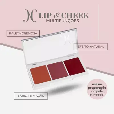 Descubra a sofisticação da Paleta Lip & Cheek, uma seleção de três tons de blushes cremosos multifuncionais, desenvolvidos para realçar sua beleza com naturalidade e leveza. Pode ser aplicada nas maçãs do rosto, olhos e lábios, oferecendo um acabamento impecável em qualquer ocasião.