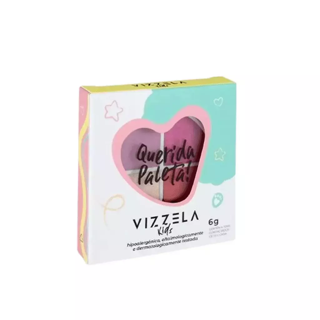 paleta de sombras infantil multifuncional que pode ser utilizada como sombra, blush e iluminador.