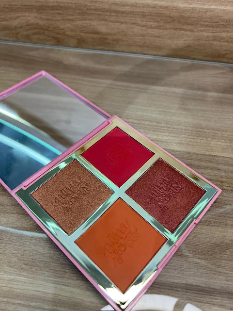 Primeiro, temos o iluminador com partículas super brilhantes e acabamento cintilante. Para complementar, têm duas cores de blush: um é pêssego brilho e outro é rosado mate. Por último, você também conta com um bronzer aveludado que vai dar aquele aspecto de pele bronzeada incrível!
