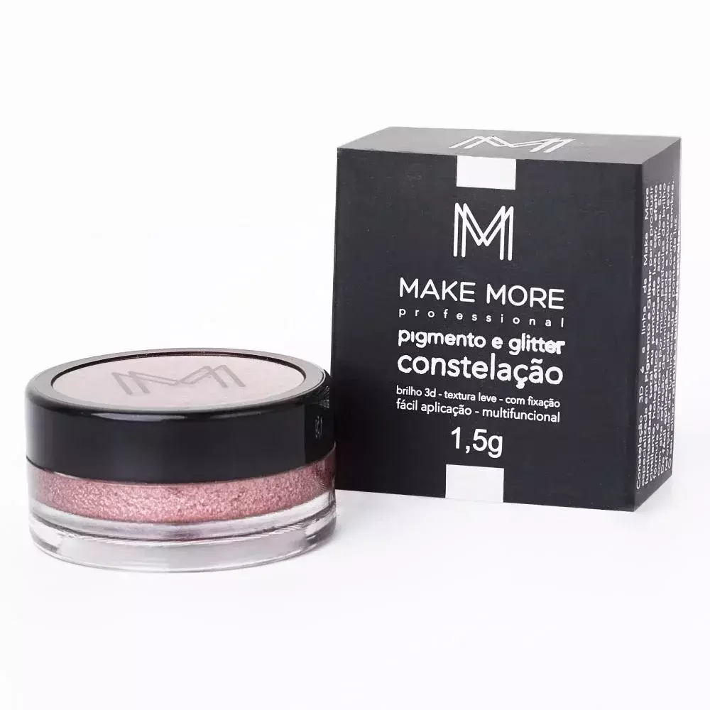 Constelação 3D é a linha da Make More especializada em Glitters e Pigmentos para produzir luminosidade total ou pontos de luz, cor, efeito cintilante, holográfico e marcante aos olhos.