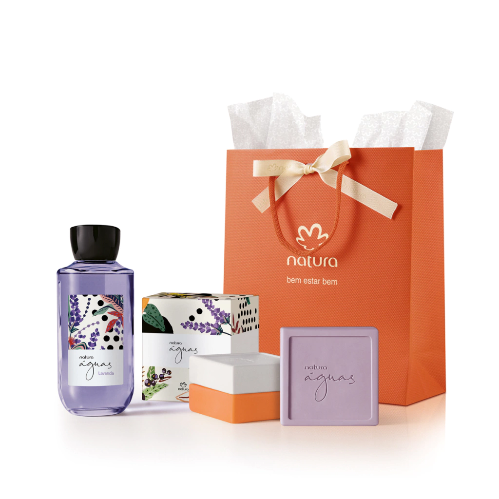 o Presente de Natura Águas vem com 2 produtos cheios de frescor e boas energias. a colônia encanta com fragrância feminina, alegre e refrescante. já os sabonetes promovem limpeza suave com 3 aromas favoritos da marca. contém desodorante colônia feminino 170 ml caixa de sabonetes em barra com 3 unidades de 90 gramas, sendo 1 lavanda, 1 jabuticaba e 1 flor de laranjeira e sacola de presente tamanho P com laço.