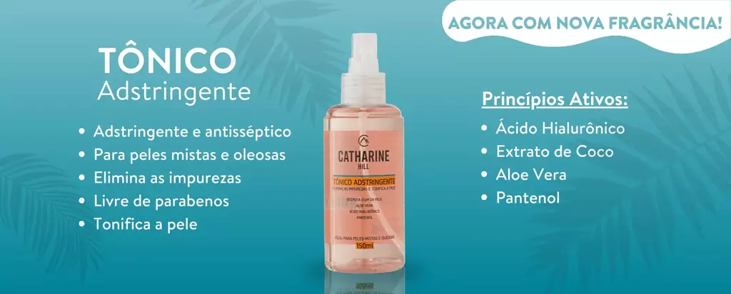 O Tônico Adstringente da marca brasileira Catharine Hill é indicado para peles mistas e oleosas. Ele elimina as impurezas e tonifica, respeitando o equilíbrio